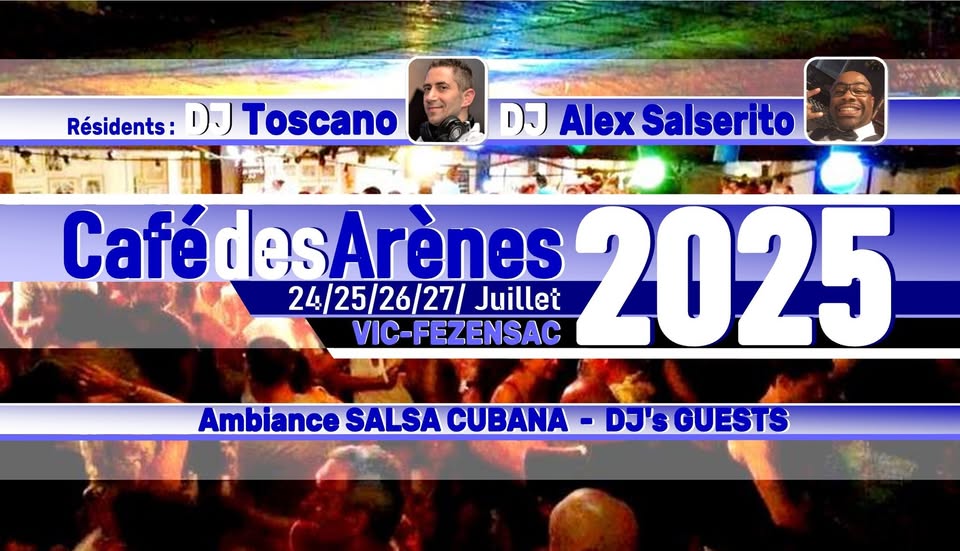 Le CAFE DES ARENES avec sa superbe terrasse ombragée, vous propose comme chaque année, des après-midis et soirées "SALSA CUBANA" durant le Festival.
